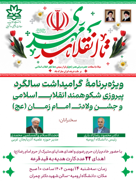 زمان: سهشنبه ۱۴ بهمن ۱۴۰۴ ساعت ۱۰ صبح مکان: دانشگاه ارومیه - سالن شهید چمران